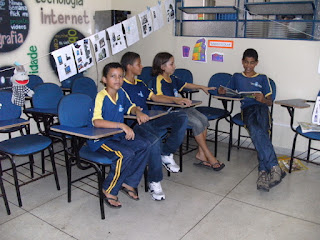 Os alunos da professora Karionne, sala de recursos, produziram essas flores de natal e montaram essa bela árvore no pátio da Escola, é a reciclagem alegrando o natal e ajudando a preservação ambiental.